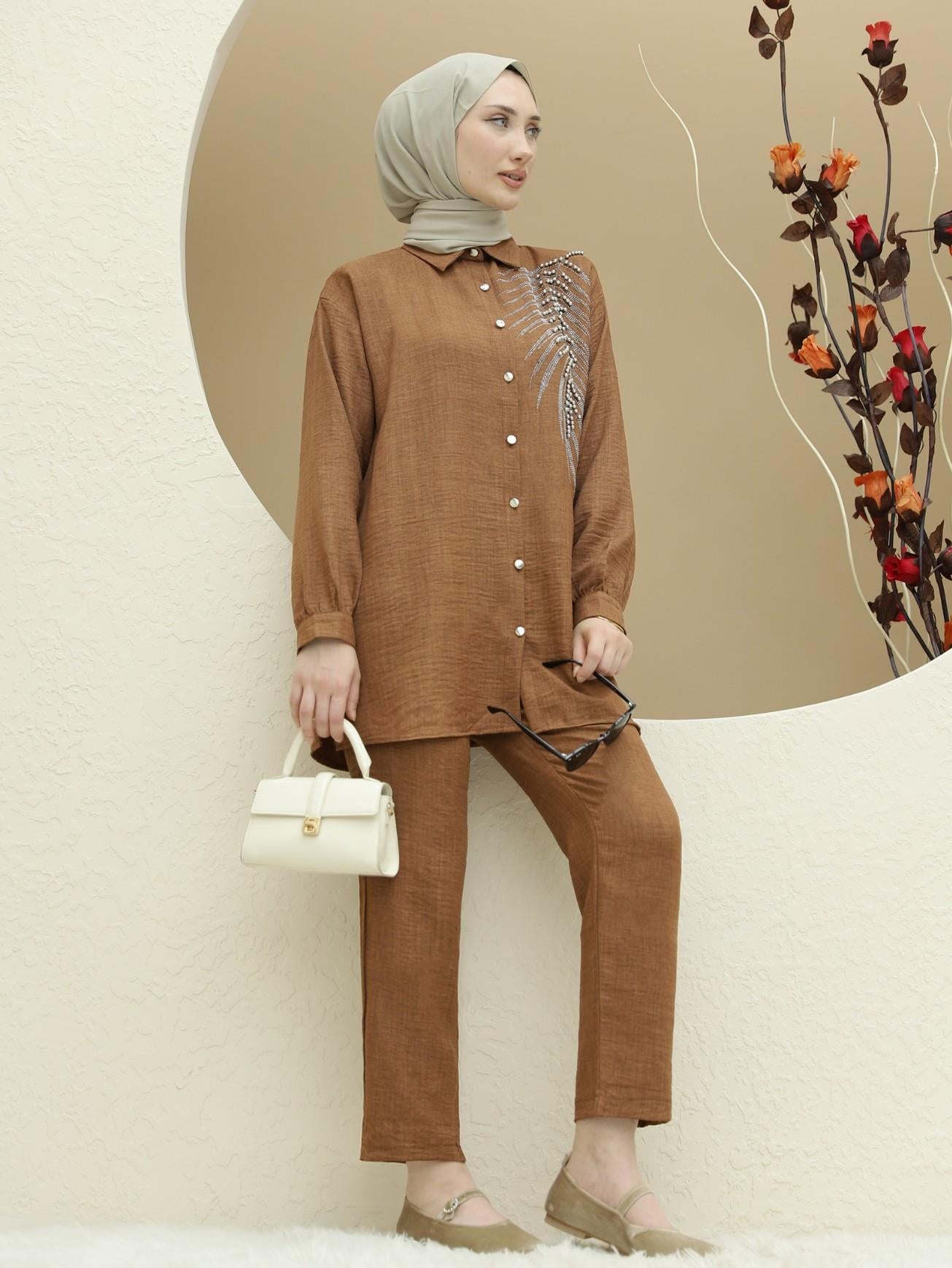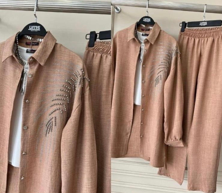 Comfortable 2-piece sets featuring a beaded long shirt with matching wide-leg pants. Made from soft, breathable fabric with a relaxed fit and elastic waistband for extra comfort. Perfect for casual outings or dressed-up occasions.